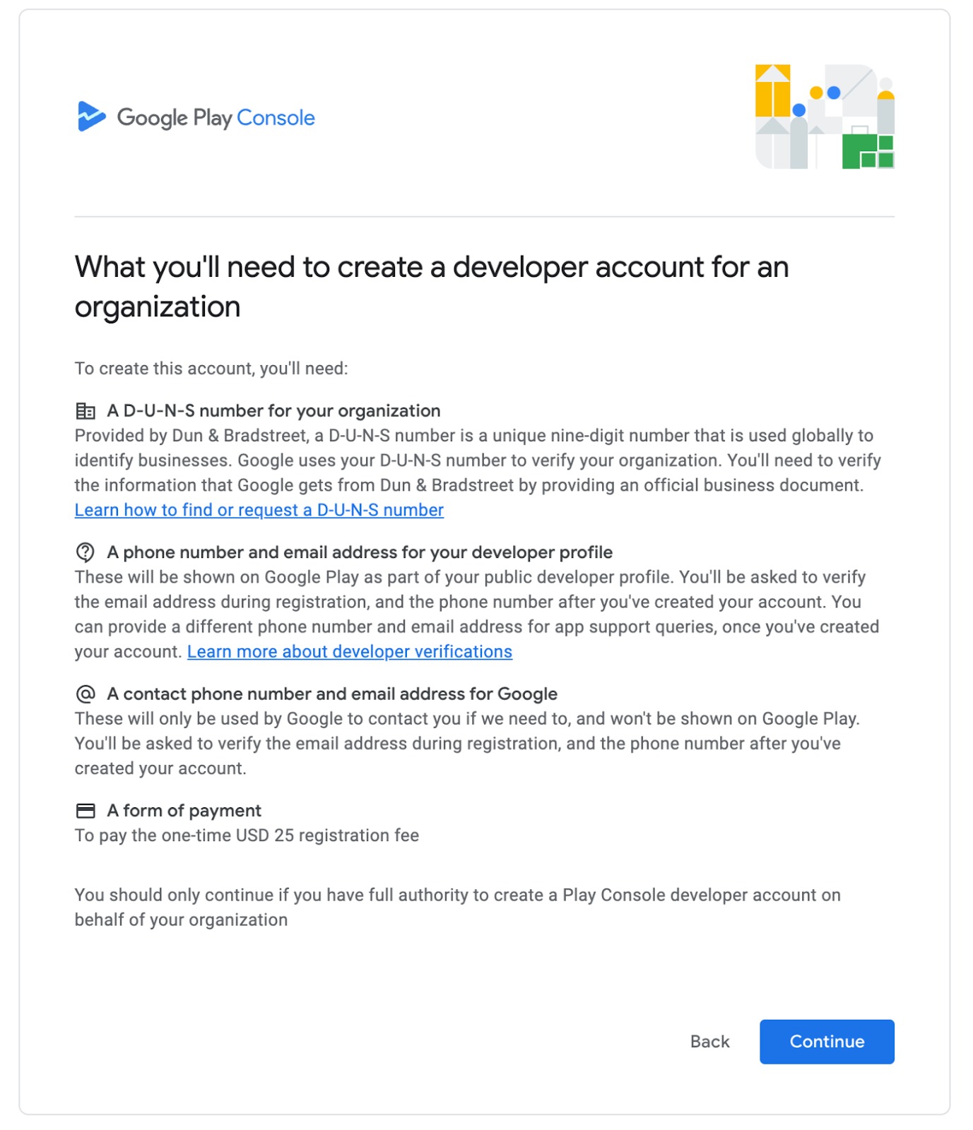 Sign in using a business Google account (create one if needed).Accept Developer Agreement