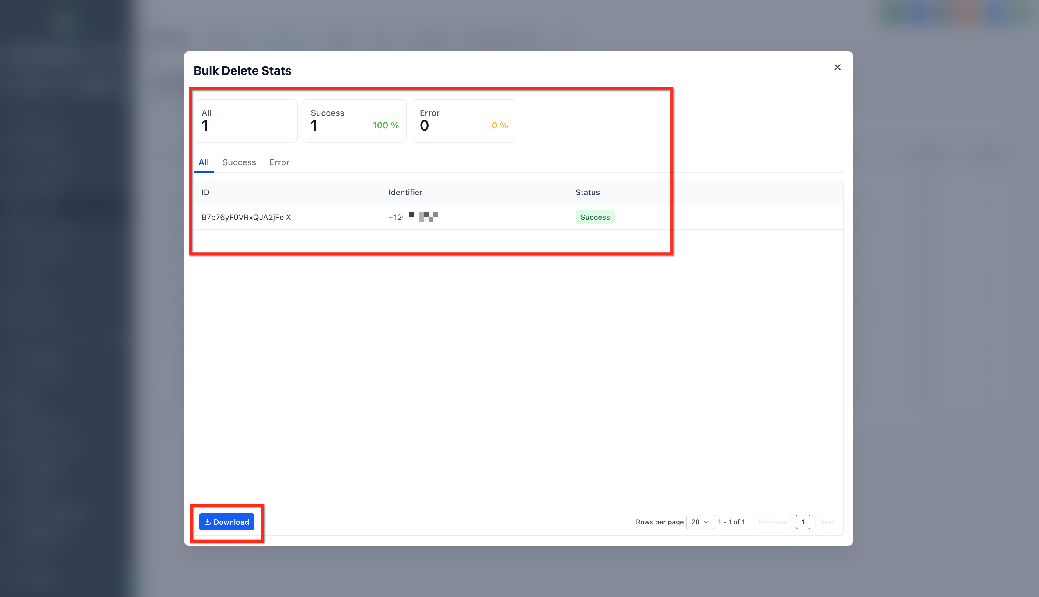 Use the Download option in the Stats view to export an error log for troubleshooting. The log typically includes identifiers for failed records and a reason you can act on.