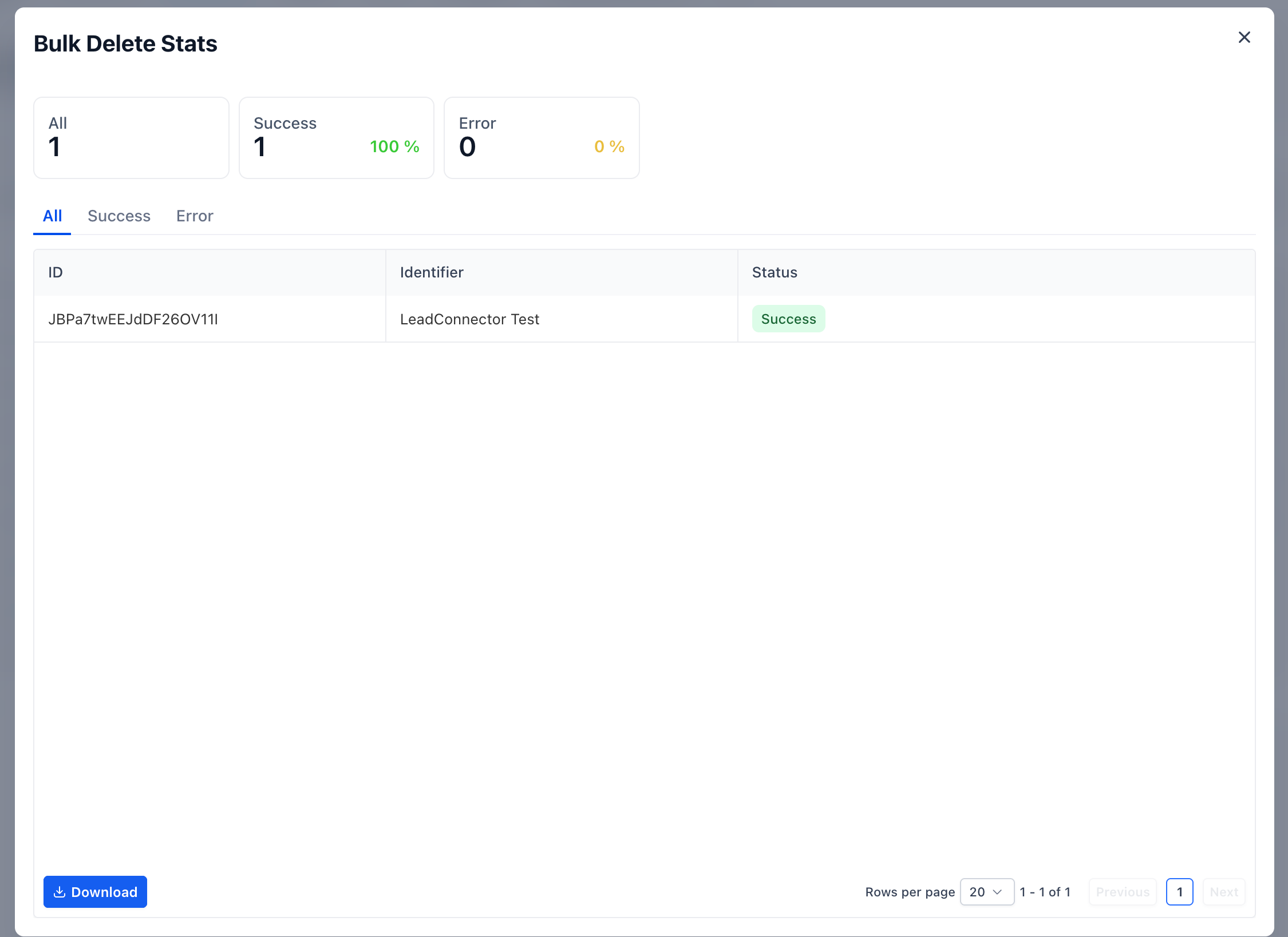 The Bulk Actions page now uses HighLevel’s unified UX for faster filtering, clearer status tracking, and one-click access to job metrics and error logs—so you can audit, troubleshoot, and, when applicable, restore deleted contacts with confidence.