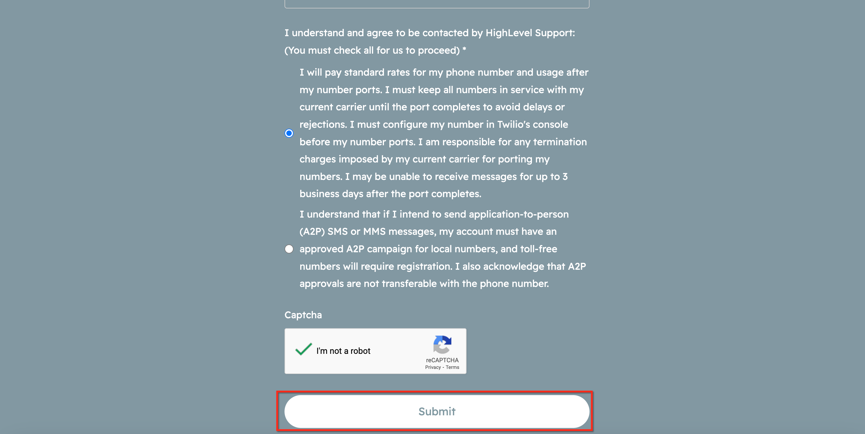 The LC Phone porting form currently accepts United States numbers only. For international ports, use Twilio International Porting (or use the Twilio path and submit via the Twilio interface).