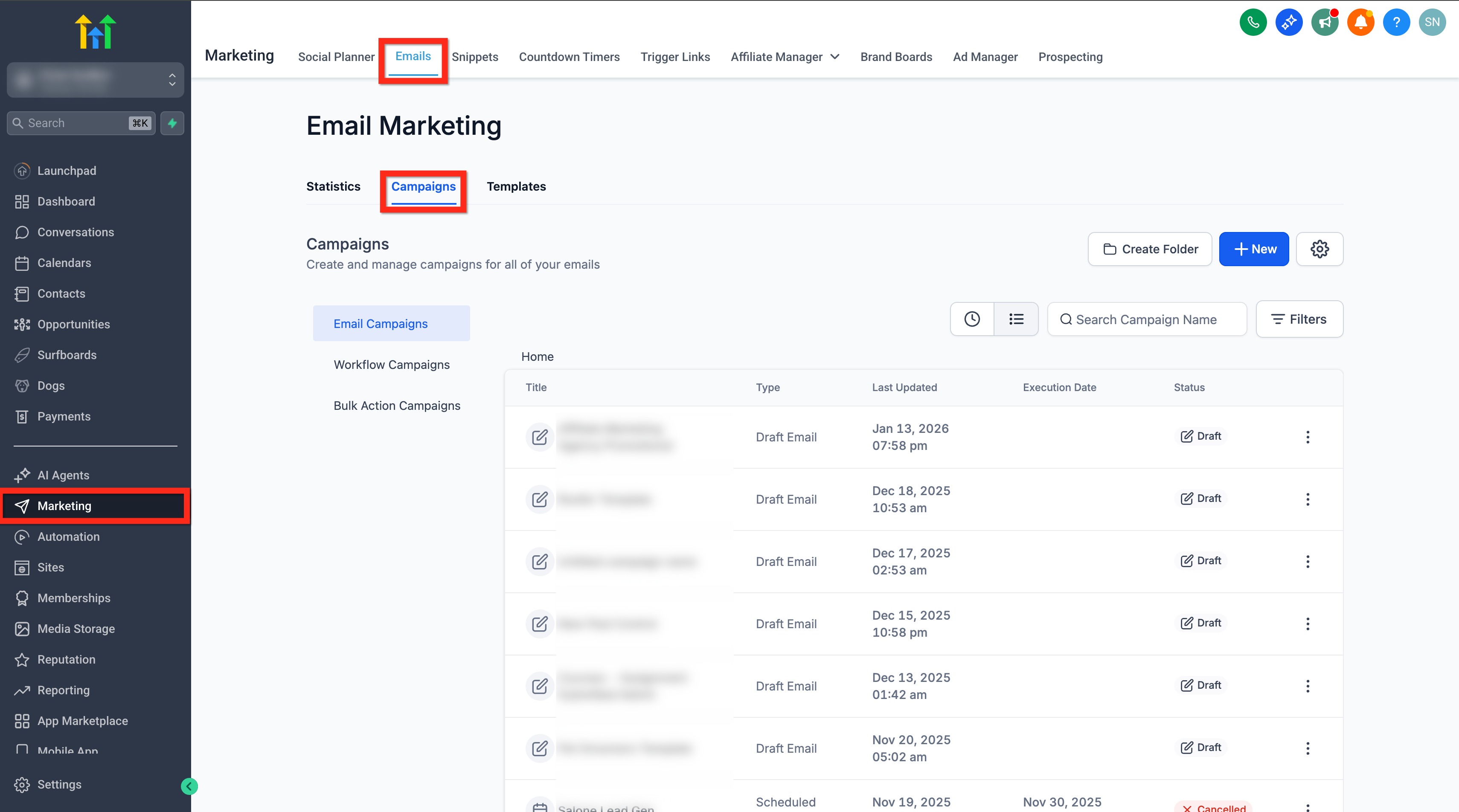 Go to Marketing > Email > Campaigns.