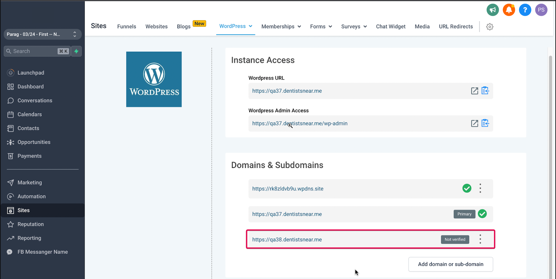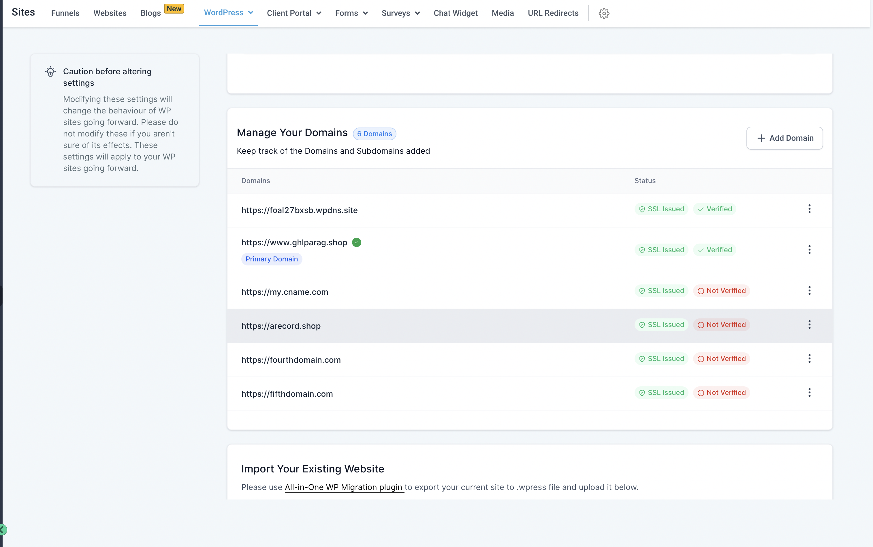 3) You will see an unverified tag near the Domain for any added domain, but the DNS Verification is not yet done.